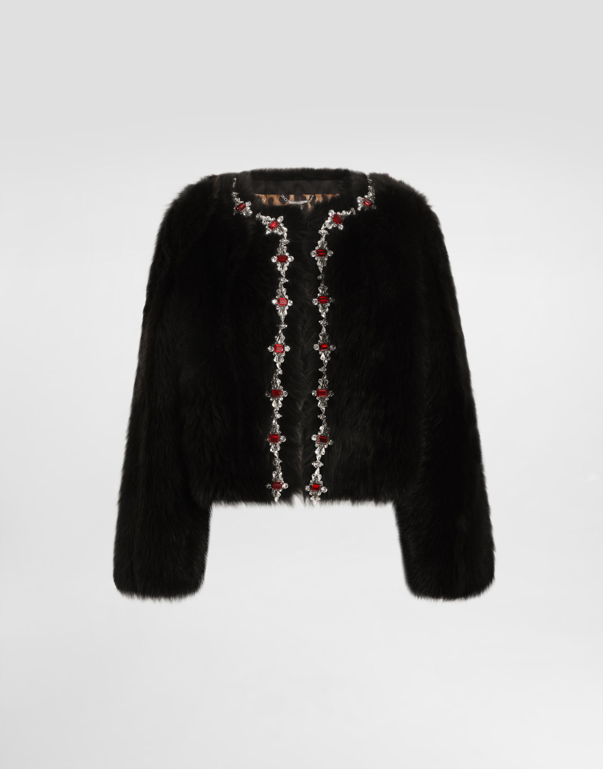 Fluffy sheepskin jacket with inlay
