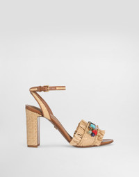 This braided sandal is a perfect example of elegance and craftsmanship, with embroidered details that enhance every step. Braided sandal with embroidered rhinestone: • Multi-coloured • Shape Keira, Sophia heel • Heel height 90 mm • Leather sole with DG metal logo • Open toe insole with fire stamp • Embroidery with stones • Gold DG electroplating • Item equipped with black cotton bag and black embossed box • Made in Italy External Composition: 43% Viscose, 43% Raffia, 4% Cotton, 4% Lambskin, 1% Jade, 1% Quartz, 1% Carnelian, 1% Natural Hematite, 1% Howlite, 1% Aventurine Internal Composition: 62% Lambskin, 38% Calfskin