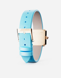 Watch from the SOFIA line with 100% pure blue silk satin strap. • Indication of hours and minutes • Material. 18 Kt pink gold • Size. 24 x 24 mm • Glass. “sapphire” glass with geometrical facets arranged in a symmetric way in order to create highly original light reflections • Bottom clasp. with four side screws and safety closure • Crown. 18 Kt pink gold set with 1 natural ruby • Water resistance. 3BAR/3ATM • Dial. pale blue enamelled, without markers with pink gold plated logo at 6 o’clock • Hands. pink gold plated, “sword shaped” • Electronic quartz movement powered by a 1.5 V, 3 years life battery . • Calibre. ETA E01.001 Swiss Made • Size. 11 mm diameter, h 2.5 mm - Frequency of the quartz. 32,768 Hz • Number of rubies. 3 • Clasp. pin buckle in 18 Kt pink gold • Swissmade Material: Red 18 kt Gold POST-SELLING WATCHES MAINTENANCE To maintain the sheen of the watch and metal bracelet, we recommend using mild soap and rinsing thoroughly with warm water. Dry with a soft cloth. We recommend this being done also after a swim in the sea or pool. It is advisable to avoid direct contact with solvents, detergents, perfumes and cosmetic products, which might damage the case, seals, bracelet and/or strap. It is advisable to protect the watch from falls and shocks, which could not only seriously damage the finish, but might affect the mechanical functions also, as well as the water resistance and accuracy of the watch. Temperatures above 60° C and below -10° C , sudden changes in pressure, density and temperature, magnetic fields, and many other factors can affect the accuracy of the watch. If you note any irregularities in operation, the watch should be taken to an authorised Dolce&Gabbana retailer. The Dolce&Gabbana watch is a high-precision timepiece. Despite the care watchmakers have dedicated to making it, the influence of magnetic fields, sudden temperature change and even the lifestyle of the wearer may result in minor irregularities. To ensure optimal operation, it is recommended that a comprehensive inspection be effected every three or four years. The owners of the watch can benefit from a global network of Dolce&Gabbana retailers, which alone are authorised to carry out operations on the watch. In the same way, for the electronic quartz movement, it is recommended that the battery be replaced by an authorised Dolce&Gabbana retailer, which will at the same time check the proper functioning and water resistance of the watch. During maintenance, the battery and any electrical parts are collected and disposed of in accordance with current regulations.