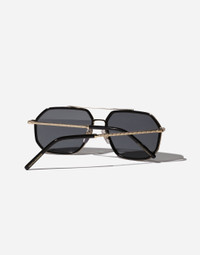 Reinterpretation of the Dolce&Gabbana heritage with a contemporary and elegant touch. •Black and gold metal frame •Gold metal temples •Grey polarized lenses •100% UV protection •Size lens - bridge - temple: 60 - 15 - 145 mm •Fitting: Adjustable nosepad •Packaging: Istitutional •Made in Italy