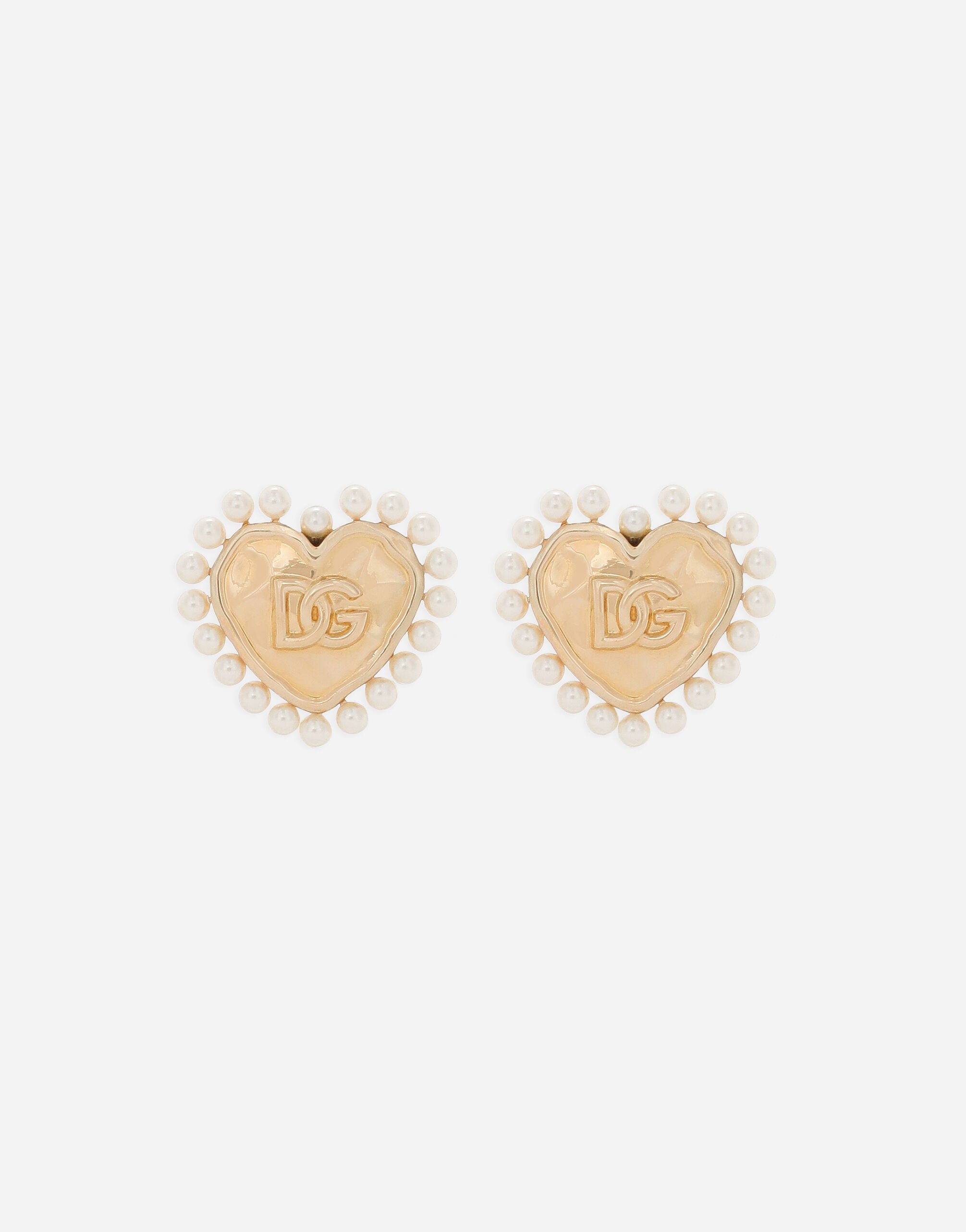 The Dolce&Gabbana Jewelry Collection is filled with unique pieces boasting great craftsmanship. Contemporary accessories with original and exclusive DG logo details, featuring different plated finishes, will be perfect for finishing off any look with style. Heart earrings with beaded detailing: • Gold • Clip-on fastening • Height: 3.5 cm • Nickel-free and hypoallergenic materials • Engraved logo • Made in Italy External composition: 70% Brass 30% Plastic