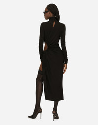 High-necked jersey calf-length dress with cut-out