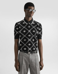 Jacquard pique polo shirt: • Multi-colored • Polo-shirt collar • Short sleeves • Bottom width 66 cm on size 48 IT • The model is 185 cm tall and wears a size 48 IT • Made in Italy External Composition: 80% Virgin Wool, 20% Silk
