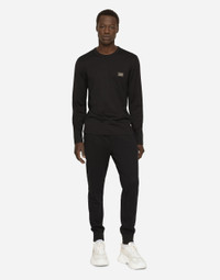 The “Essential” Collection is the modern men's closet designed by Dolce&Gabbana. A range of timeless, iconic pieces developed across all product categories. Jogging pants in cotton jersey with a metal tag featuring the Dolce&Gabbana logo: • Regular fit • Stretch waistband with drawstring and branded aglets • Front welt pockets and back welt pocket with zipper • Stretch ankle cuffs • The item measures 96 cm on the outer leg on a size IT 48 • The model is 185 cm tall and wears a size IT 48 • Made in Italy External composition: 100% Cotton