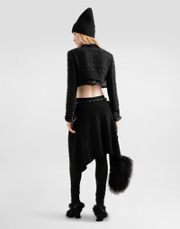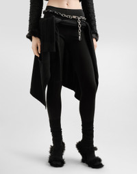 In the Fall/Winter 2025 Fashion Show Collection, shearling jackets, in fur-free versions, reveal slip dresses and create contrast' plays while denim welcomes fabric or Leo print inserts. Sweatshirts are the result of long experimentation with volumes. Evening looks become precious thanks to dresses with special embroideries and luminous touches of sequins and crystals. Sheepskin inserts also unite hats, shoes, and bags, including those with pockets. These jersey leggings offer a perfect mix of comfort and style, ideal for a casual yet refined look. Jersey leggings: • Black • The model is 175 cm tall and wears size 40 IT • Made in Italy External Composition: 68% Viscose, 28% Polyamide, 4% Elastane