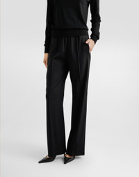 The Women's Black Sicily Collection reinforces Dolce&Gabbana's iconic fabrics and codes rooted in Italian heritage. Sensual silhouettes, highlighted by floral prints and refined corsetry, evoke an intriguing elegance, while the iconic black lace, satin, and velvet dominate the collection. Denim in various shades of blue introduces a contemporary twist, balancing the classic and modern. Embroidered crosses, medals, and jewelry add a sophisticated touch. Stretch jersey Milano rib leggings: • Black • High wide waistband • Inner leg: 76 cm • Hem: 11.5 cm • Front zipper fastening • The model is 175 cm tall and wears a size IT 40 • Made in Italy External composition: 68% Viscose 28% Polyamide 04% Spandex