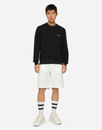 Cotton jersey round-neck sweatshirt with metal tag featuring the Dolce&Gabbana logo: • Blue •Regular fit •Stretch knit hem, neck and cuffs •The piece measures 69 cm from the rear collar seam on a size IT 48 •The model is 185 cm tall and wears a size IT 48 •Made in Italy Care And Details External composition: 100% Cotton