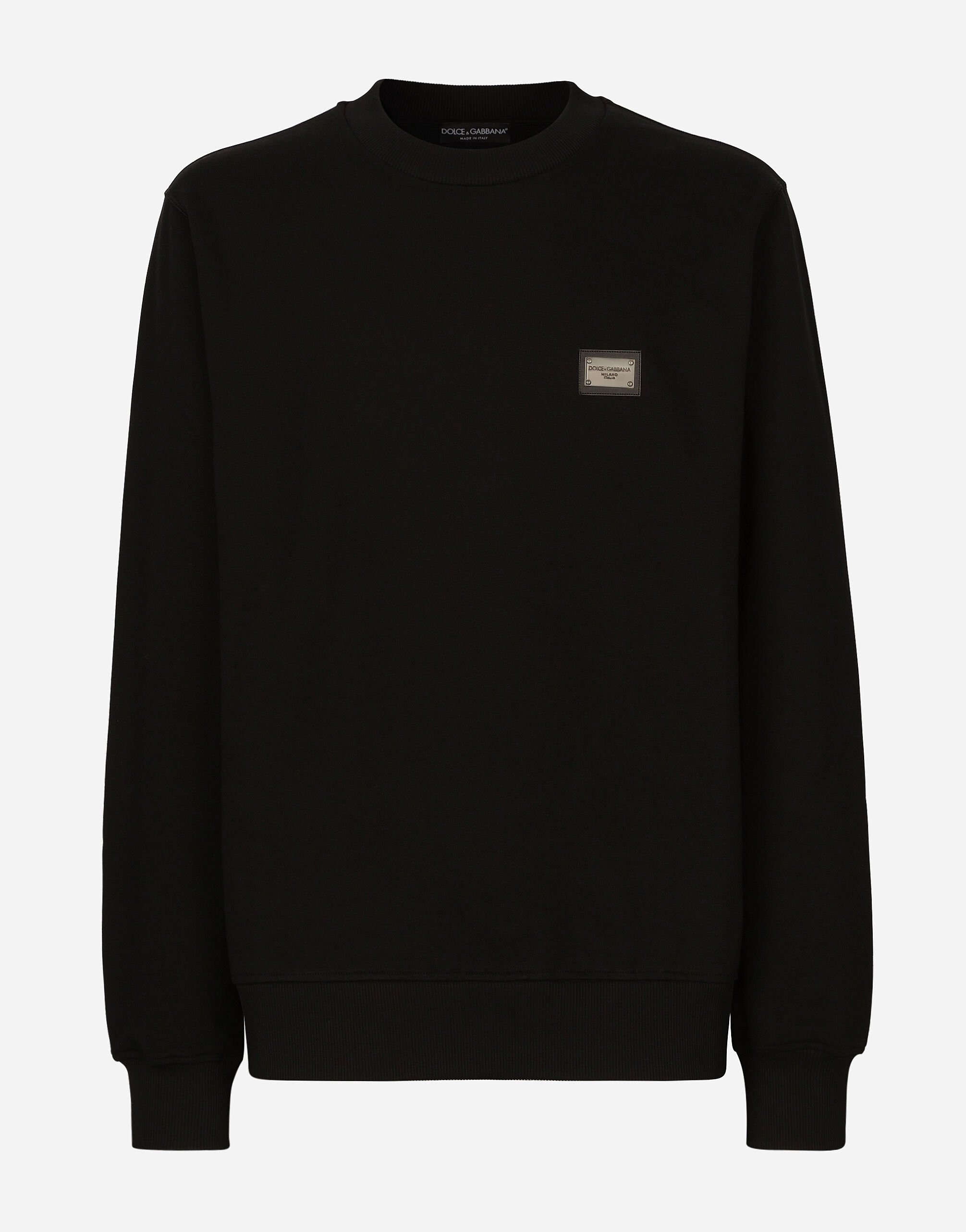Cotton jersey round-neck sweatshirt with metal tag featuring the Dolce&Gabbana logo: • Regular fit • Stretch knit hem, neck and cuffs • The piece measures 69 cm from the rear collar seam on a size IT 48 • The model is 185 cm tall and wears a size IT 48 • Made in Italy Care And Details External composition: 100% Cotton