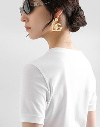 Dolce&Gabbana is creating a new DNA collection, using its style with a new concept of everyday elegance and apparel. Timeless, contemporary and traditional style, where sweatshirts, pants, T-shirts and sweaters are embellished by the DG logo, adding a touch of character to your outfits. Cotton jersey T-shirt with DG logo embroidery: • White • Round neckline • Short sleeves • Folded ribbed neck and sleeve trims • Form fitting • The piece measures 60.5 cm from the back of the neck on a size IT 40 • The model is 175 cm tall and wears a size IT 40 • Made in Italy External composition: 100% Cotton