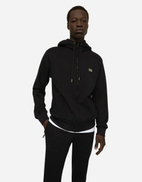 Cotton jersey hoodie with metal tag featuring the Dolce&Gabbana logo: • Regular fit • Zipper fastening • Drawstring hood with branded metal aglets • Zipped welt pockets • Stretch knit hem and cuffs • The piece measures 70 cm from the rear collar seam on a size IT 48 • The model is 185 cm tall and wears a size IT 48 • Made in Italy Care And Details External composition: 100% Cotton