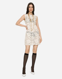 This elegant white lace dress is perfect for special occasions, combining the delicacy of the fabric with a sophisticated, sleeveless design. Lace dress with floral pattern: • White • Sleeveless • Made in Italy External Composition: 51% Viscose, 24% Cotton, 20% Polyamide, 5% Elastane Internal Composition: 91% Silk, 9% Elastane
