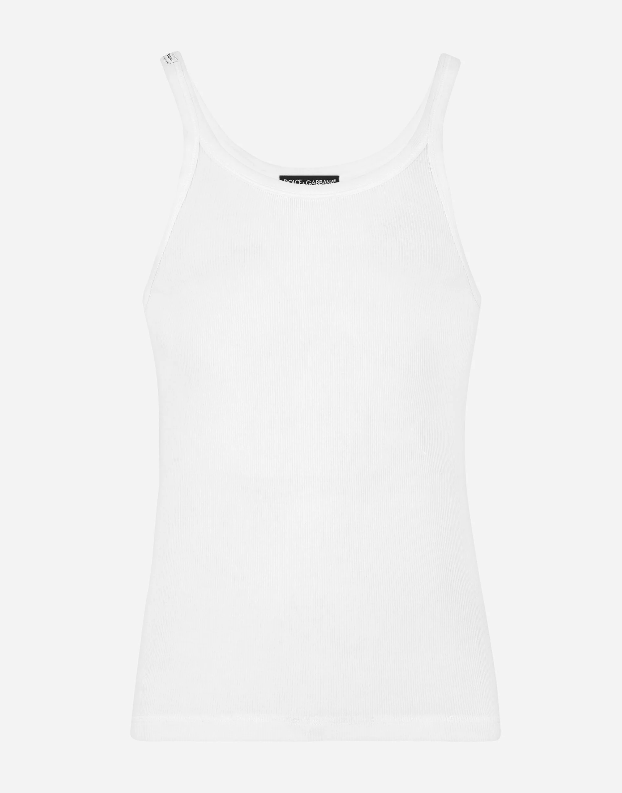 Narrow-shouldered singlet in cotton jersey. • Slim fit • Round neck with branded label • The piece measures 56.5 cm - 22.2 inches from the rear collar seam on a size IT 48 • The model is 185 cm - 72.8 inches tall and wears a size IT 48 • Made in Italy Care And Details External composition: 100% Cotton