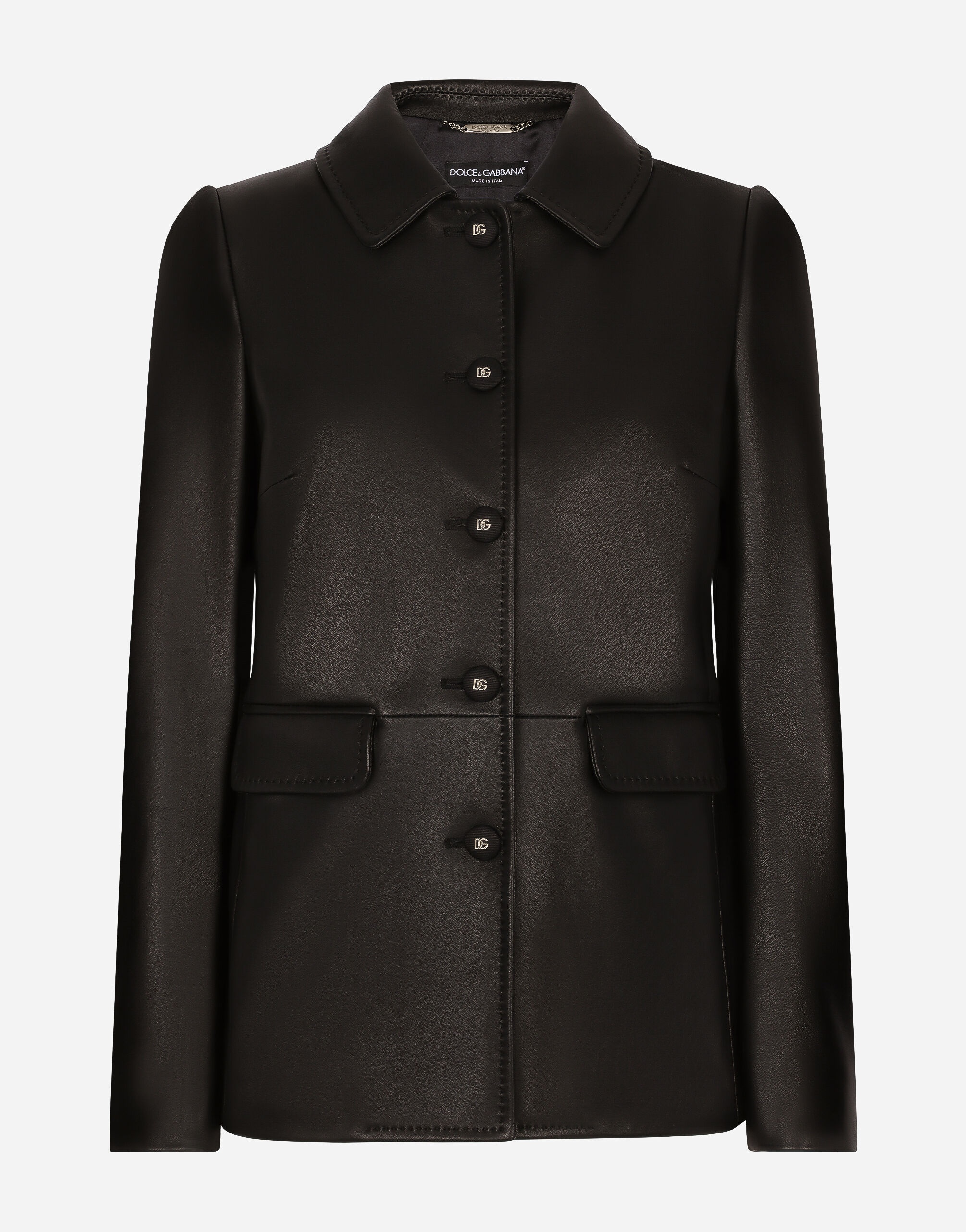 The DNA collection is distinguished by timeless shapes, bringing together three concepts: Sicilian flair, tailoring and sensuality. Nero Sicilia black and optical white predominate and pair with colors that catapult us onto the island of Sicily and make us dream. The designers channel the timeless wardrobe made up of creations that are instantly unmistakable in their simplicity, presenting us with sophisticated beauty loaded with meaning and symbolism that transcends fashion. Lambskin jacket: • Black • Shirt collar • Single-breasted • Long sleeves • Flap pockets • Stretch silk satin lining • Button fastenings • The piece measures 65 cm from the center back on a size IT 40 • The model is 175 cm tall and wears a size IT 40 • Made in Italy External composition: 100% Lambskin Internal composition: 92% Silk 8% Spandex