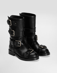 In the Fall/Winter 2025 Fashion Show Collection, shearling jackets, in fur-free versions, reveal slip dresses and create contrast' plays while denim welcomes fabric or Leo print inserts. Sweatshirts are the result of long experimentation with volumes. Evening looks become precious thanks to dresses with special embroideries and luminous touches of sequins and crystals. Sheepskin inserts also unite hats, shoes, and bags, including those with pockets. Discover the new Horse Leather ankle boot, a must-have for a casual and sophisticated look. This ankle boot combines elegance and practicality, perfect for any occasion. Horse Leather ankle boots: • Black • Bernini shape • Leather sole with TPU sole • Leather heel cup with logo label • With buckles • Miami palladium plating • Item equipped with black Cotton bag and black embossed box • Made in Italy External Composition: 100% Horse Leather Internal Composition: 94% Calfskin, 6% Goatskin