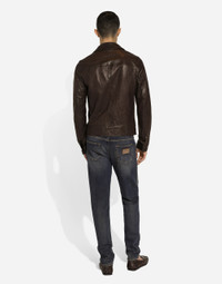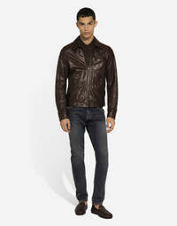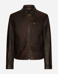 The Palermo collection represents the link between the Sicilian man’s world and the unspoiled nature of the island. A language marked by warm hues - sand, cream, Nero Sicilia black - floral paintings and iconic prints.The Dolce&Gabbana closet must-haves have been reworked in different materials, in pursuit of a new form of harmony. A collection rich in suggestion, such as the stripes inspired by the old mattresses of the 1940s and 1950s, and the timeless aesthetic of the looks. Crushed-look leather jacket: • Brown • Slim fit • Shirt collar • Front zipper fastening • Welt side pockets with button and zipped breast pocket • Lined • The piece measures 72 cm from the rear collar seam on a size IT 48 • Made in Italy External composition: 100% Sheepskin Internal composition: 100% Silk