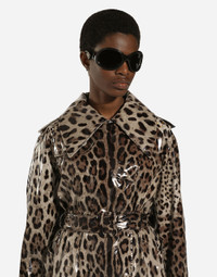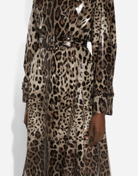 Leopard-print coated satin trench coat