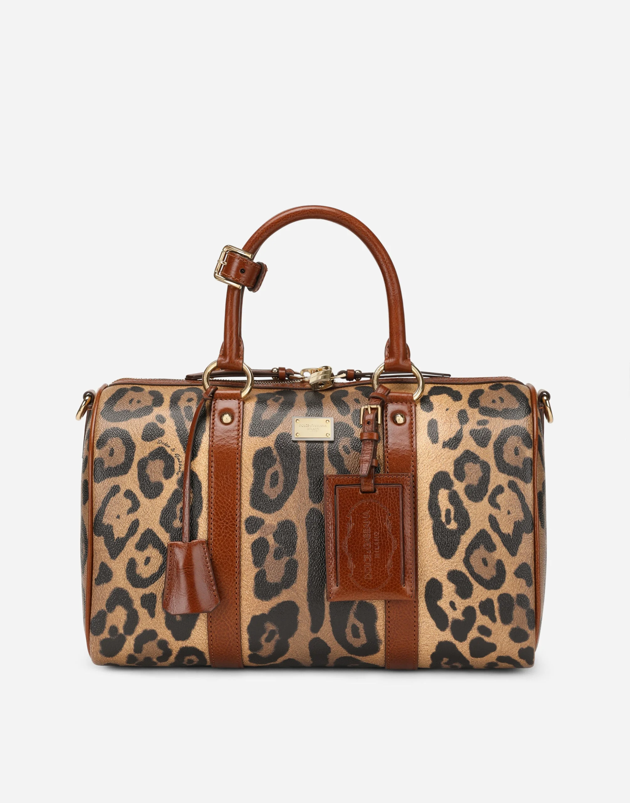 Practical and versatile, this handbag comes in the iconic leopard-print Crespo with calfskin details. Featuring meticulous attention to detail, the fabric has been carefully printed and then protected by a coating: • Gold-plated zipper on top with double slider and calfskin zip-pull • Branded plate featuring two metal plating finishes • Double calfskin top handles and adjustable and detachable calfskin strap • Detachable branded tag and gold-plated padlock • Canvas lining with storage pockets • Item comes with a branded dust bag • Measurements: 21 x 35 x 18 cm - 8.3 x 13.8 x 7.1 inches • Made in Italy Care And Details External composition: 33% Cotton 27% Polyurethane 25% Calfskin 9% Polyester 5% Viscose 1% PVC