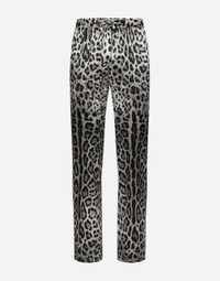 Contemporary men’s formalwear: The FW 24/25 Dolce&Gabbana Men’s Collection is embracing the concept of absolute elegance dominated by the iconic Nero Sicilia black. The daywear of the Dolce&Gabbana man comes to life through the outerwear that comes in a range of lengths and the slim-fit pants. For nightwear, the look becomes scintillating thanks to sequined embellishment and stone appliques. This refined taste can also be seen on the accessories, such as on the slip-ons with hand-applied organza flower accent and the new clutch. Leopard-print satin pajama pants with piping: • Gray • Regular fit • Stretch waistband with drawstring • Front slant pockets and welt back pocket • The item measures 115 cm on the outer leg and the hem is 25 cm wide on a size IT 48 • Made in Italy External composition: 100% Silk