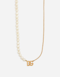 The Dolce&Gabbana Jewelry Collection is filled with unique pieces boasting great craftsmanship. Contemporary accessories with original and exclusive DG logo details, featuring different plated finishes, will be perfect for finishing off any look with style. Link necklace with pearls and DG logo: • Clasp fastening • Nickel-free and hypoallergenic materials • Engraved logo • Made in Italy External composition: 60% Brass 40% Acrylic glass