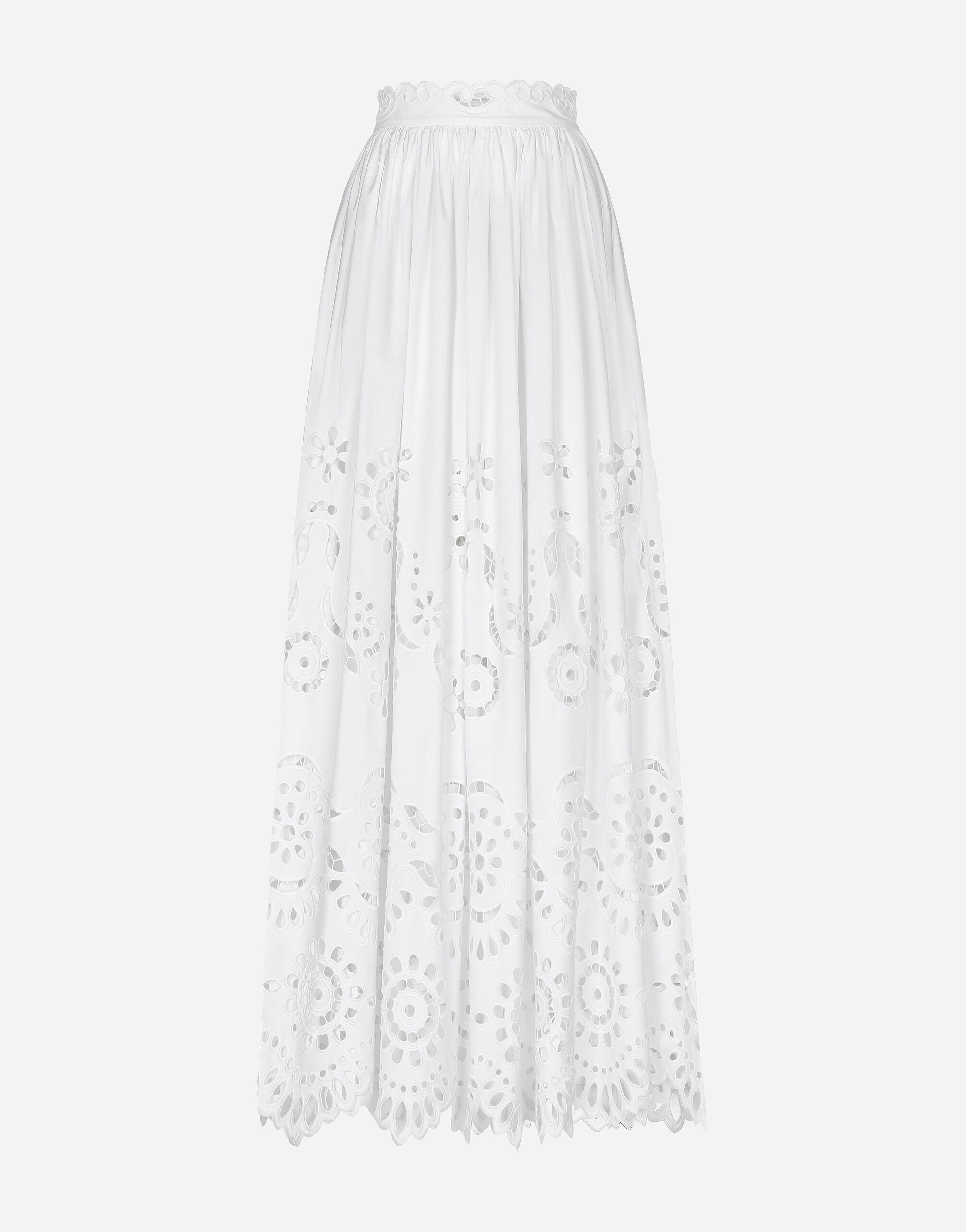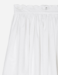 The Italian summers of the 1960s, the candid purity of white, the sophisticated elegance of the jet set of that era. The imagery of the FW24/25 Capri Collection encapsulates all this flawlessly. The pieces range from floaty poplin silhouettes or sack-style dresses and skirts, to brocade outerwear and floral-inlay fabric shirts. The iconic bags – the Logo Bag, the Sicily Bag and the Dolce Box – complement the looks, while the shoes come embroidered with designs inspired by the crystal-clear sea of Capri. Long cotton poplin circle skirt with cut-out detailing: • White • High-waisted • Unlined • Rear zipper and hook-and-eye fastening • The piece measures 110 cm from the waist down on a size IT 40 • The model is 175 cm tall and wears a size IT 40 • Made in Italy External composition: 95% Cotton 05% Polyester