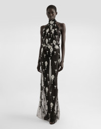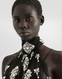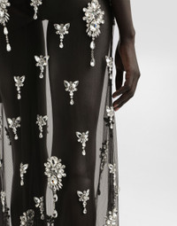 Long dress in tulle embroidered with rhinestones