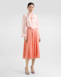 This pleated chiffon long skirt is the epitome of elegance and femininity. Perfect for a special evening or a formal event, its sophisticated design and detailed workmanship make it a must-have item in any woman's wardrobe. Long pleated chiffon skirt: • Pink • Belt of 5 cm • Invisible zip at the back • With petticoat • Length 75 cm from waist on size 40 IT • The model is 175 cm tall and wears size 40 IT • Made in Italy External Composition: 100% Polyester Internal Composition: 92% Silk, 8% Elastane