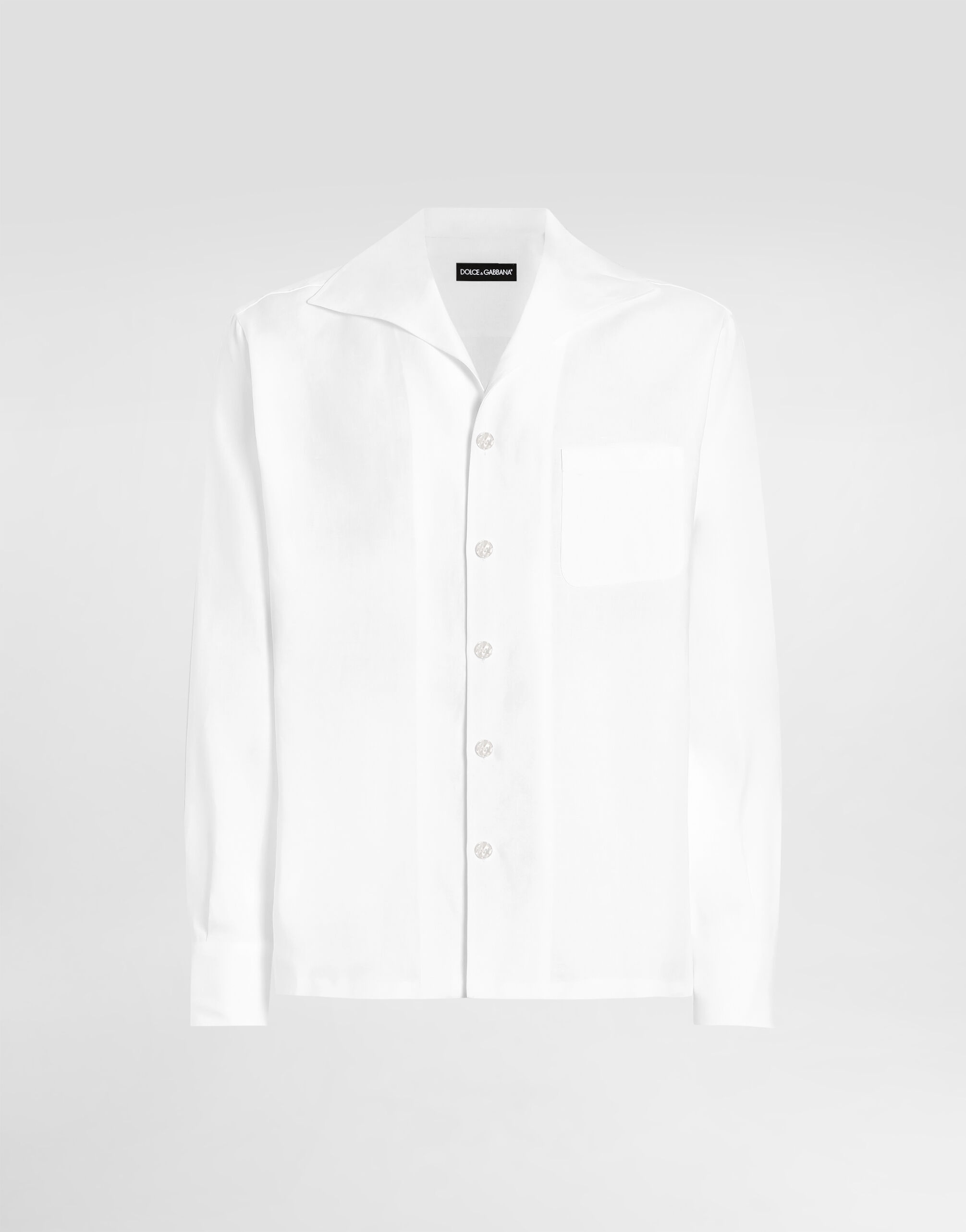 Italy and its beauty are reflected in the Men’s SS25 Collection. Woven raffia and leather give life to jackets, polo-shirts and sweaters to celebrating Italian craftsmanship. The color palette ranges from Nero Sicilia black to burgundy, contributing to conveying a sense of eternal elegance. Refined accessories complement the look: belts and loafers with hand-finished details and oversize bags, such as the Sicily, the Marlene with crocodile-effect print and the versatile Adamo tote. Long-sleeved linen shirt: • White • Oversize fit • Long sleeves • Button fastenings • The piece measures 74 cm from the rear collar seam on a size IT 40 • Made in Italy External composition: 100% Linen