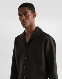 Italy and its beauty are reflected in the Men’s SS25 Collection. Woven raffia and leather give life to jackets, polo-shirts and sweaters to celebrating Italian craftsmanship. The color palette ranges from Nero Sicilia black to burgundy, contributing to conveying a sense of eternal elegance. Refined accessories complement the look: belts and loafers with hand-finished details and oversize bags, such as the Sicily, the Marlene with crocodile-effect print and the versatile Adamo tote. Long-sleeved linen shirt: • Black • Oversize fit • Long sleeves • Button fastenings • The piece measures 74 cm from the rear collar seam on a size IT 40 • Made in Italy External composition: 100% Linen