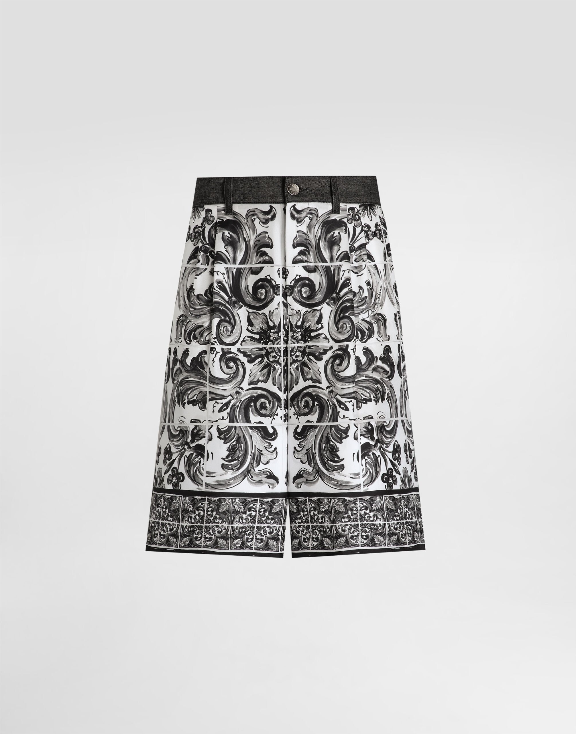 These denim Bermuda shorts are perfect for a casual and fashionable look, thanks to their craftsmanship and unique details that make them an exclusive garment. Maiolica-printed denim bermuda shorts: • Multi-coloured • Zipped flap • Back yoke with interlocking stitching • Back pockets • Hip length 34 cm on size 48 IT • The model is 185 cm tall and wears a size 48 IT • Made in Italy The difference in the print placement that you may find on this product is a feature of Dolce&Gabbana’s “Handmade” pieces. A detail that makes every garment or accessory unique and exclusive. External Composition: 55% Cotton, 45% Silk