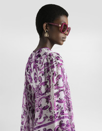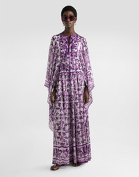 This silk chiffon dress, decorated with a vibrant Majolica print, is an example of elegance and craftsmanship. Its refined silhouette and refined details make it perfect for special occasions, enhancing feminine beauty with a touch of exclusivity. Chiffon dress with Majolica print: • Multi-coloured • Cut-out waist with drawstring • Crew neck neckline with bow • Center front opening with bow closure • Bodice with side panels • Invisible zip in the center back • The model is 175 cm tall and wears size 40 IT • Made in Italy The difference in the print placement that you may find on this product is a feature of Dolce&Gabbana’s “Handmade” pieces. A detail that makes every garment or accessory unique and exclusive. External Composition: 100% Silk