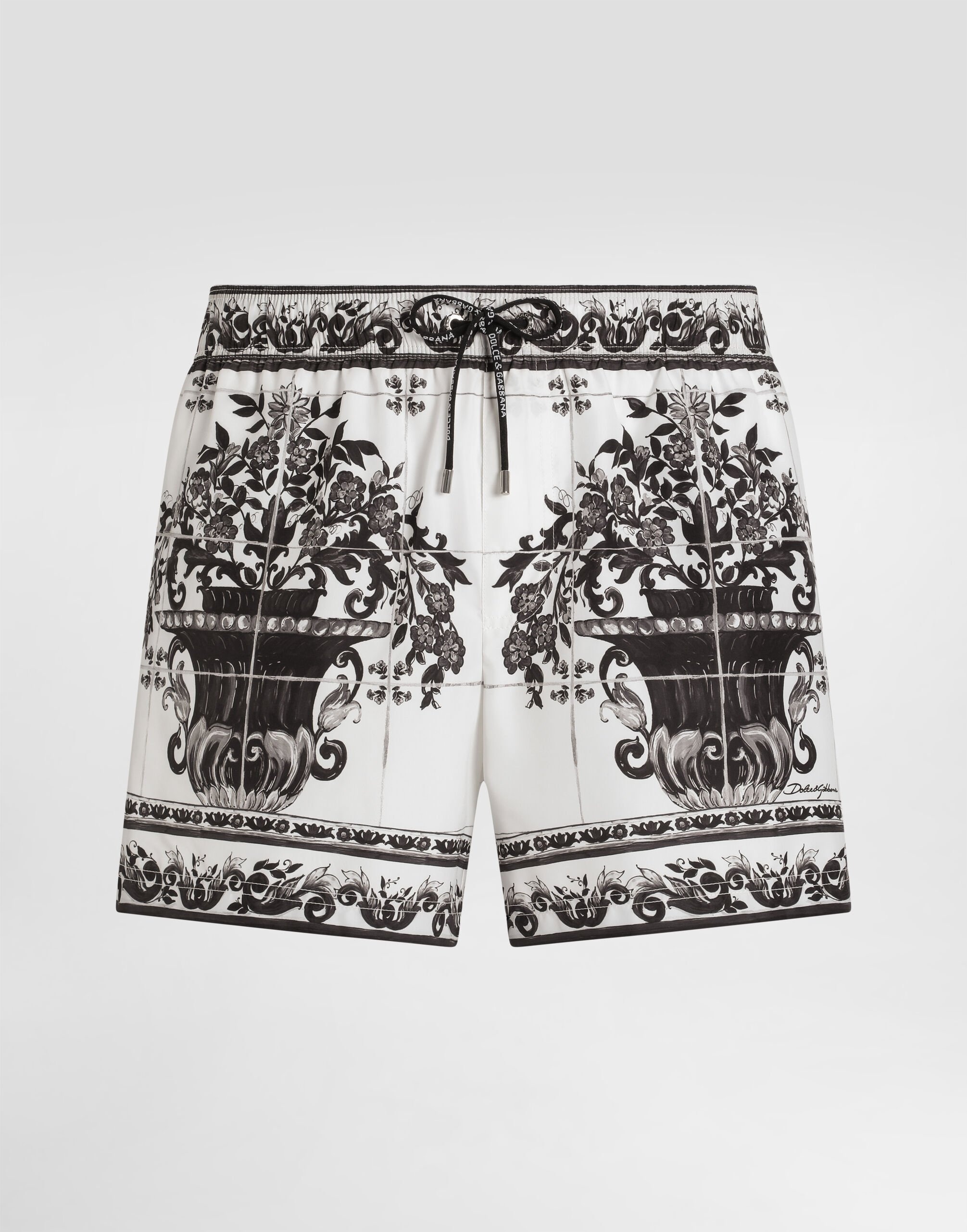 Discover the elegance and versatility of our short boxer, perfect for summer days and beach holidays. Majolica-print short swim boxer shorts: • Multi-coloured • With pocket • Inner briefs • Equipped with a coordinated pouch with zip closure • Made in Italy The difference in the print placement that you may find on this product is a feature of Dolce&Gabbana’s “Handmade” pieces. A detail that makes every garment or accessory unique and exclusive. External Composition: 100% Polyester Internal composition: 12% Elastane, 88% Polyamide