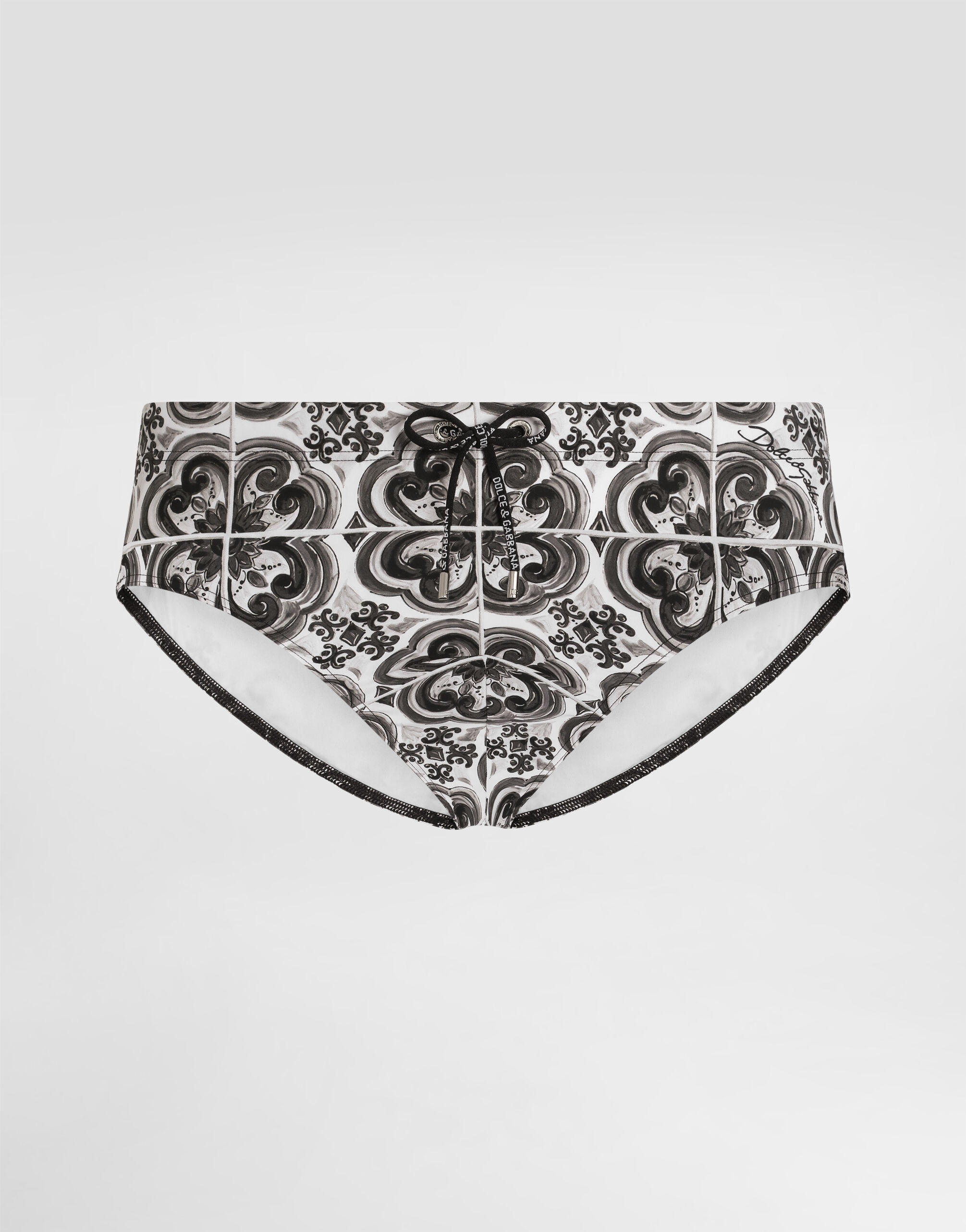 The high swim briefs with matching clutch, ideal for those looking for elegance and comfort on the beach. Crafted with attention to detail, this piece offers a sophisticated and unique look. Majolica-print high swim briefs: • Multi-coloured • Equipped with a coordinated pouch with zip closure • Made in Italy The difference in the print placement that you may find on this product is a feature of Dolce&Gabbana’s “Handmade” pieces. A detail that makes every garment or accessory unique and exclusive. External composition:26% Elastane, 74% Polyamide Internal composition: 12% Elastane, 88% Polyamide