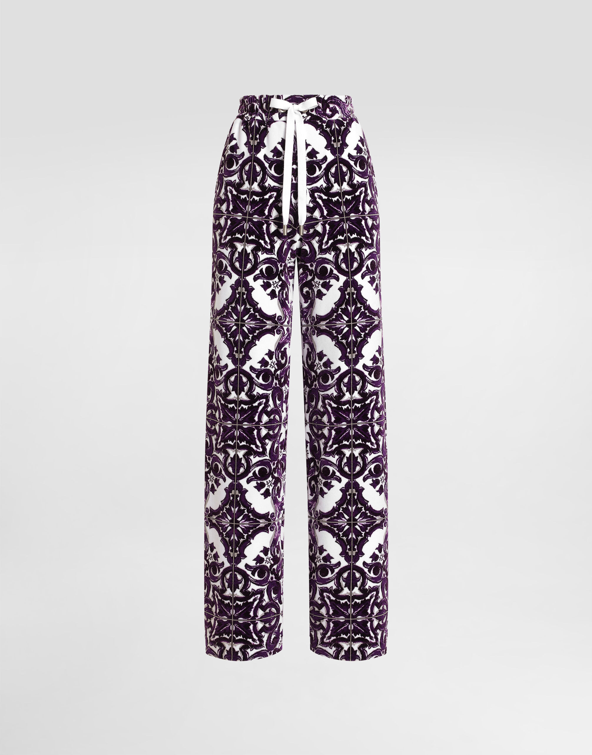 These jacquard chenille trousers with Majolica print are the perfect expression of style and comfort, ideal for adding a touch of elegance to your everyday wardrobe. Chenille jacquard trousers with Majolica print: • Multi-coloured • Hip pockets • Elasticated fabric waistband • The model is 175 cm tall and wears size 40 IT • Made in Italy The difference in the print placement that you may find on this product is a feature of Dolce&Gabbana’s “Handmade” pieces. A detail that makes every garment or accessory unique and exclusive. External Composition: 84% Cotton, 16% Polyamide