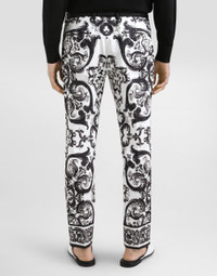 These Majolica print trousers are a versatile piece that combines comfort and style. Perfect for a casual and refined look, it stands out for its handcrafted details that make it one of a kind. Majolica-print trousers: • Multi-coloured • The model is 185 cm tall and wears a size 48 IT • Made in Italy The difference in the print placement that you may find on this product is a feature of Dolce&Gabbana’s “Handmade” pieces. A detail that makes every garment or accessory unique and exclusive. External Composition: 97% Cotton, 3% Elastane