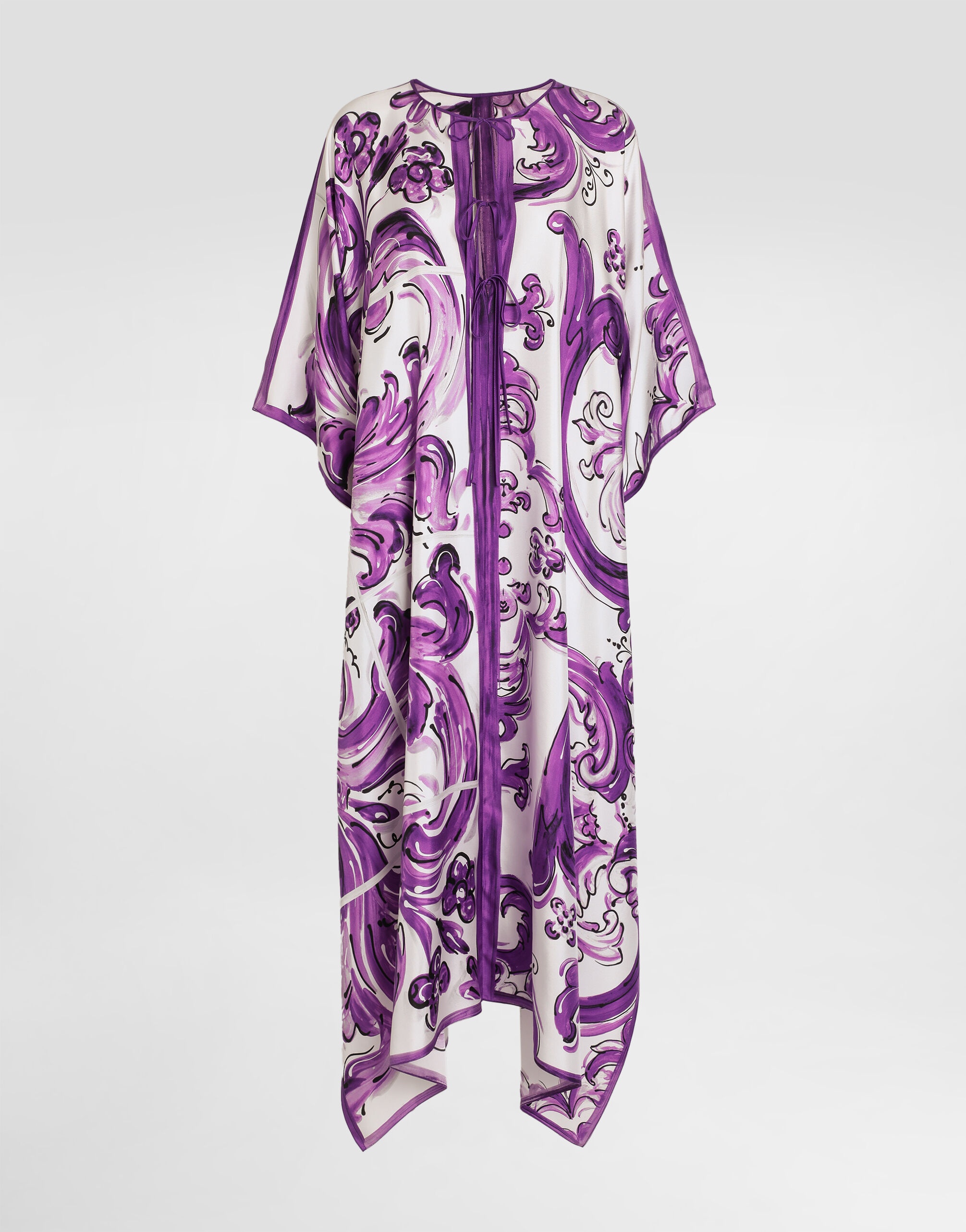 This caftan is an example of timeless elegance, perfect for those looking for a sophisticated and unique look. Crafted from silk twill with a Majolica print, this dress embodies the beauty of Italian craftsmanship. Twill caftan dress with Majolica print: • Multi-coloured • Opening on the front • Neckline edged with drawstring • Side slits • The model is 175 cm tall and wears size 40 IT • Made in Italy The difference in the print placement that you may find on this product is a feature of Dolce&Gabbana’s “Handmade” pieces. A detail that makes every garment or accessory unique and exclusive. External Composition: 100% Silk