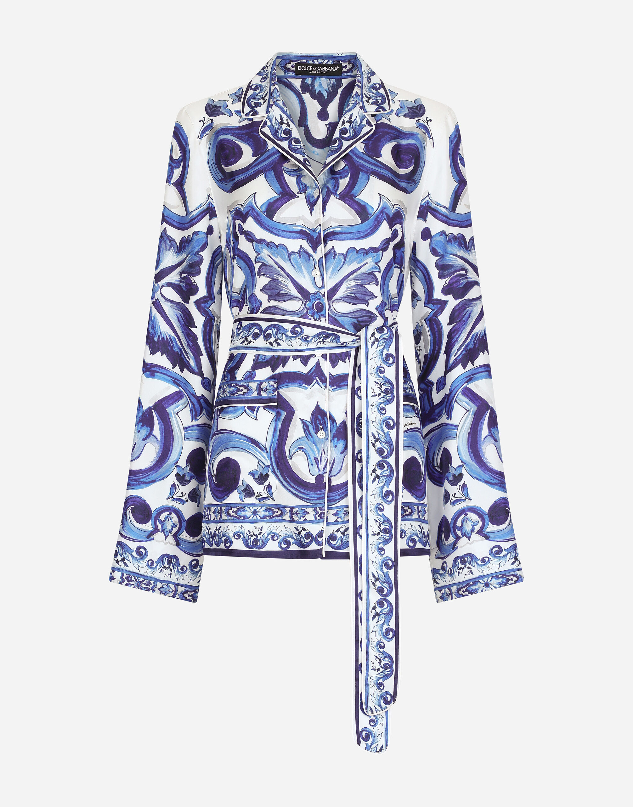Majolica-print twill pajama shirt