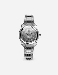 Manifattura Italiana watch in 18-carat white gold MILANO WATCH Movement DG 01.01 automatic caliber with classic escapement Movement type: automatic – self-winding Power reserve: 58 hours (tolerance 0/-3 hours) Frequency: 21,600 vibrations per hour (3 Hz) General information Integration’s diameter: 30.00 mm Total diameter: 30.50 mm Movement height without aiguillage: 4.00 mm Movement height with aiguillage: 6.30 mm Items of parts: 209 pieces Numbers of jewels: 30 jewels Technical data Constant force M0: 380 g*mm Barrel wheel total revolution: 12.2 revolution Barrel wheel revolution per hour: 5.15 revolution Mainspring type: slipping bridle Spiral type: flat spiral Balance wheel type: balance wheel with gold micro mass weights, variable inertia Crown wheel: 15 teeth Balance wheel inertia: 10.00 mg.cm2 Lift angle: 46° Caliber weight: 14.70 grams Rotor material: sintered tungsten carbide metal Rotor weight: 2.70 grams 18 kt white gold Gemstones Crown: 1 black diamond, round shape, rose cut: 0.18 ct 18 kt white gold POST-SALE WATCH MAINTENANCE To maintain the brilliance of the watch and metal bracelet, we recommend using mild soap and rinsing thoroughly with warm water. Dry with a soft cloth. We recommend this being done also after a swim in the sea or pool. It is advisable to avoid direct contact with solvents, detergents, perfumes and cosmetic products, which might damage the case, seals, bracelet and/or strap. It is advisable to protect the watch from falls and shocks, which could not only seriously damage the finish, but might affect the mechanical functions also, as well as the water resistance and accuracy of the watch. After adjustments, it is recommended to always push the crown firmly against the case to prevent water or dust from entering the mechanism. The watch is water resistant up to 3 BAR / 3 ATM. This means it has been tested under underwater pressure equivalent to a depth of 20 meters. The watch should never be used for sports involving a high risk of impact (such as surfing, water skiing, etc.). Leather straps are not suitable for activities involving water. When the watch is wet, do not pull out the crown, as water could enter the case. Temperatures above 60°C/140°F and below -10°C/14°F , sudden changes in pressure, density and temperature, magnetic fields, and many other factors can affect the accuracy of the watch, we recommended to avoid placing the watch next to objects which could generate strong magnetic fields, such as loudspeakers and electric motors. If you note any irregularities in operation, the watch should be taken to an authorised Dolce&Gabbana retailer.