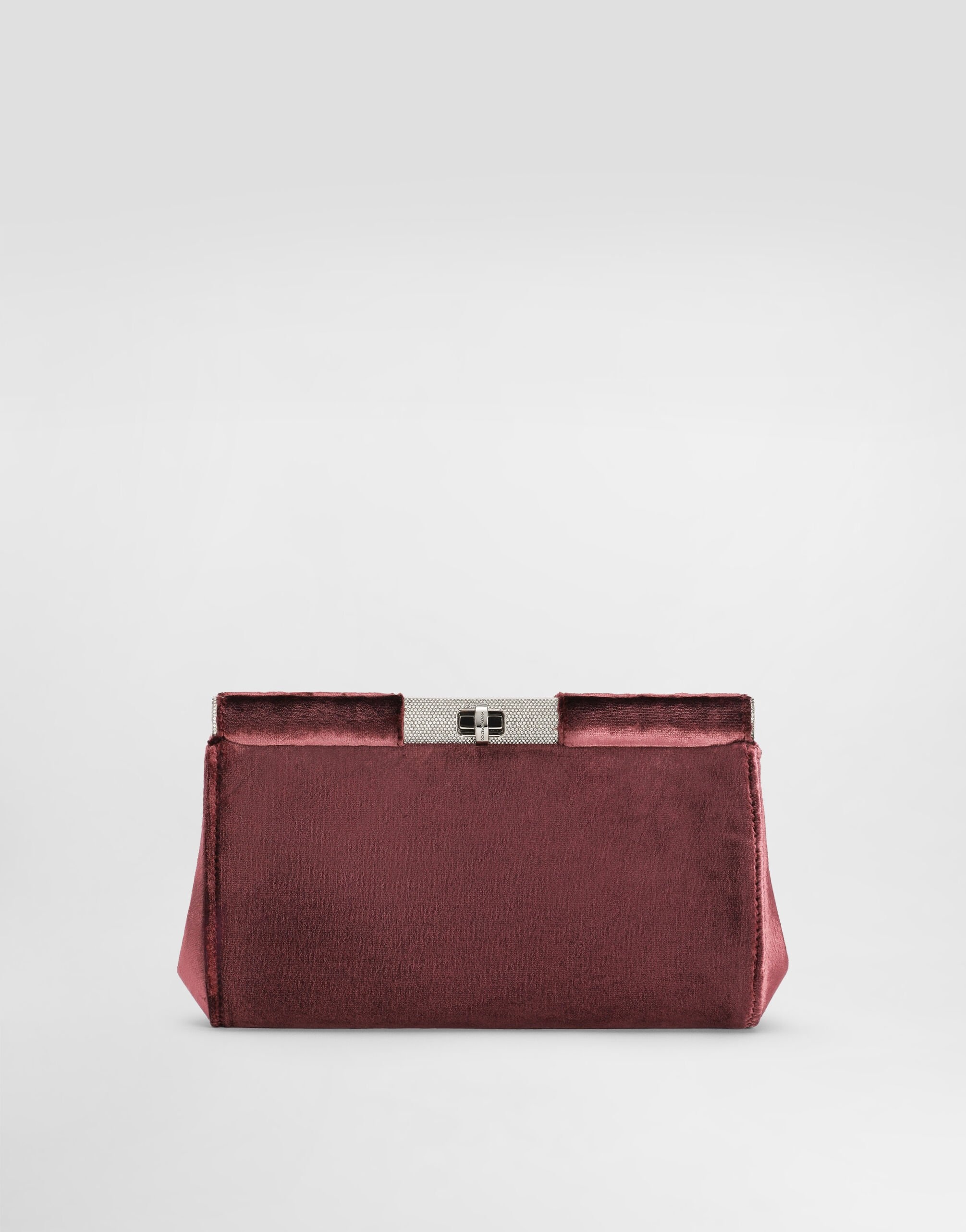 Iconic and timeless, this Marlene bag comes in velvet. Chain strap embellishment. Velvet Marlene shoulder bag: • Burgundy • Chain strap • Silver-plated metal turn-lock fastening • Satin lining and flat pocket • Item comes with a branded dust bag • Measurements: H14 x W23 x D4.5 cm • Made in Italy External composition: 70% Viscose 25% Cotton 5% Polyester Internal composition: 68% Viscose 32% Silk