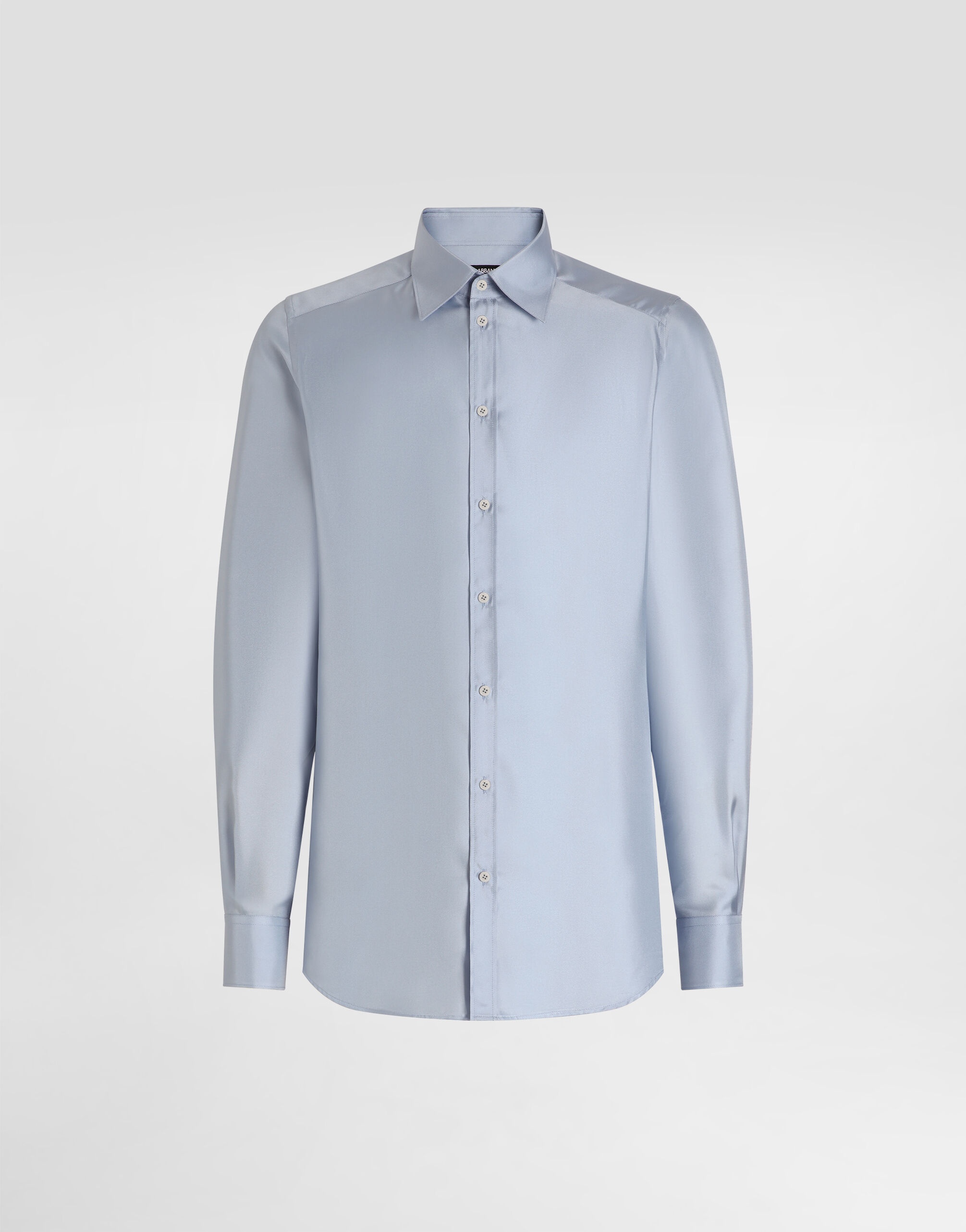 This formal shirt is an essential piece for any men's wardrobe, combining elegance and comfort thanks to its silk workmanship. Martini shirt in silk twill: • Light blue • Palermo collar • Long sleeves • Rounded cuffs • The model is 185 cm tall and wears a size 48 IT • Made in Italy External Composition: 100% Silk