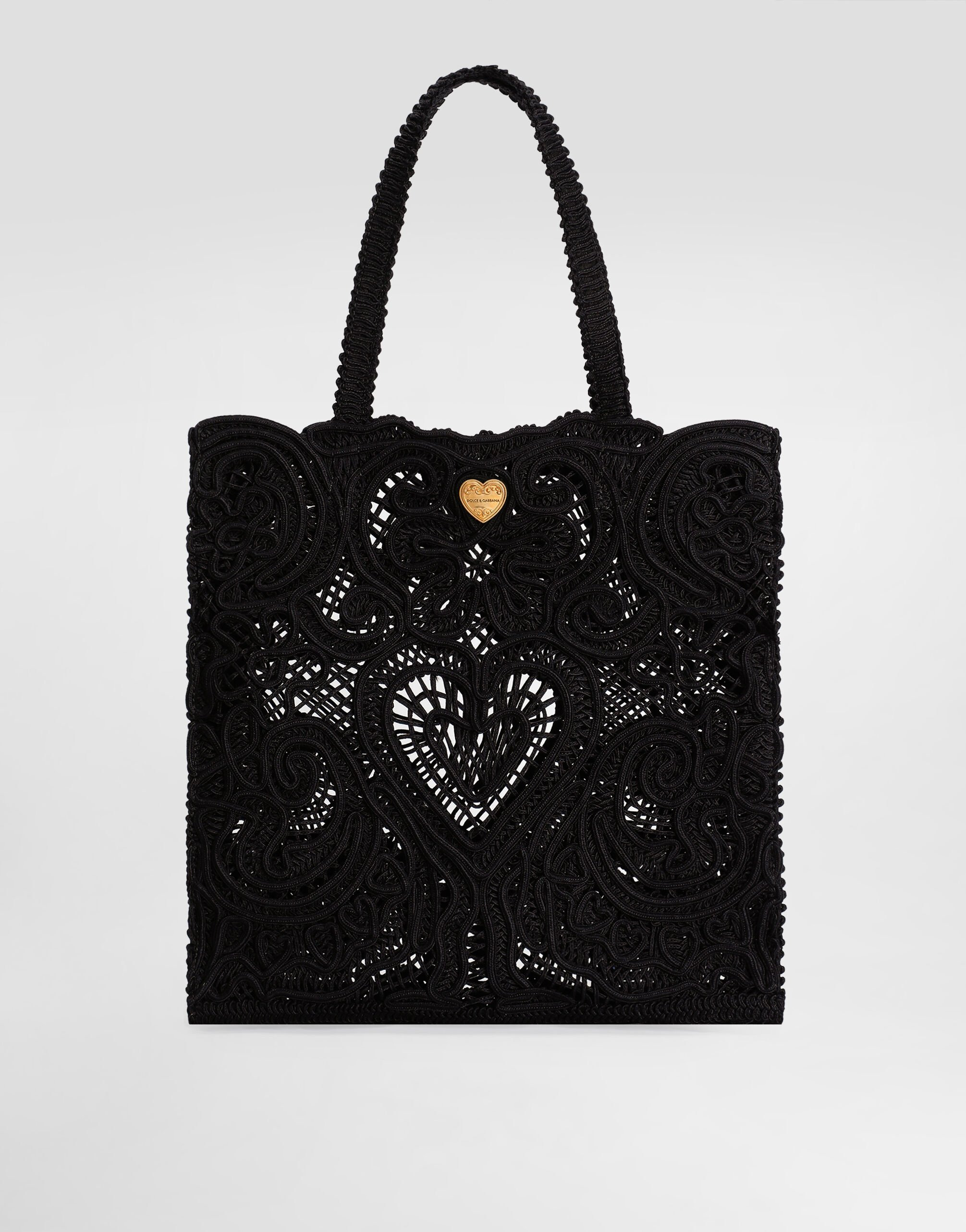 Featuring an exclusive design, this medium Beatrice shopper symbolizes craftsmanship and refinement. The fine cordonetto lace, which embodies Sicilian tradition and represents the brand's signature aesthetic, creates the image of a feminine and unique woman. Completely unlined, it has double handles and features the branded heart: • Double top handles in cordonetto lace • Item comes with a matching dust bag • Measurements: 37 x 35 x 8 cm - 14.6 x 13.8 x 3.1 inches • Made in Italy Care And Details Composition: 90% Cotton 10% Viscose