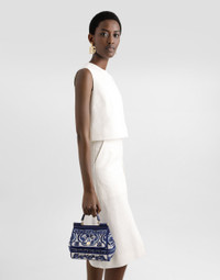 An explosion of colors and refined details characterizes the Sicily medium handbag, embellished with Majolica embroidery that makes it a unique and sophisticated piece. Medium Sicily handbag with Majolica embroidery: • Multi-coloured • Leather handles, removable and adjustable leather shoulder strap • Tuck-in closure with light gold galvanic buckle • Bigalvanic plate • Internal customization with stamp with film • Interior with card pocket and flat pocket • Item equipped with a logo bag and pre-assembled box • Measurements: H18.5 x W20 x D 10cm • Can hold keys, card holder and phone. • Made in Italy External Composition: 90% Cotton, 10% CalfskinInternal Composition: 90% Cotton, 10% Calfskin