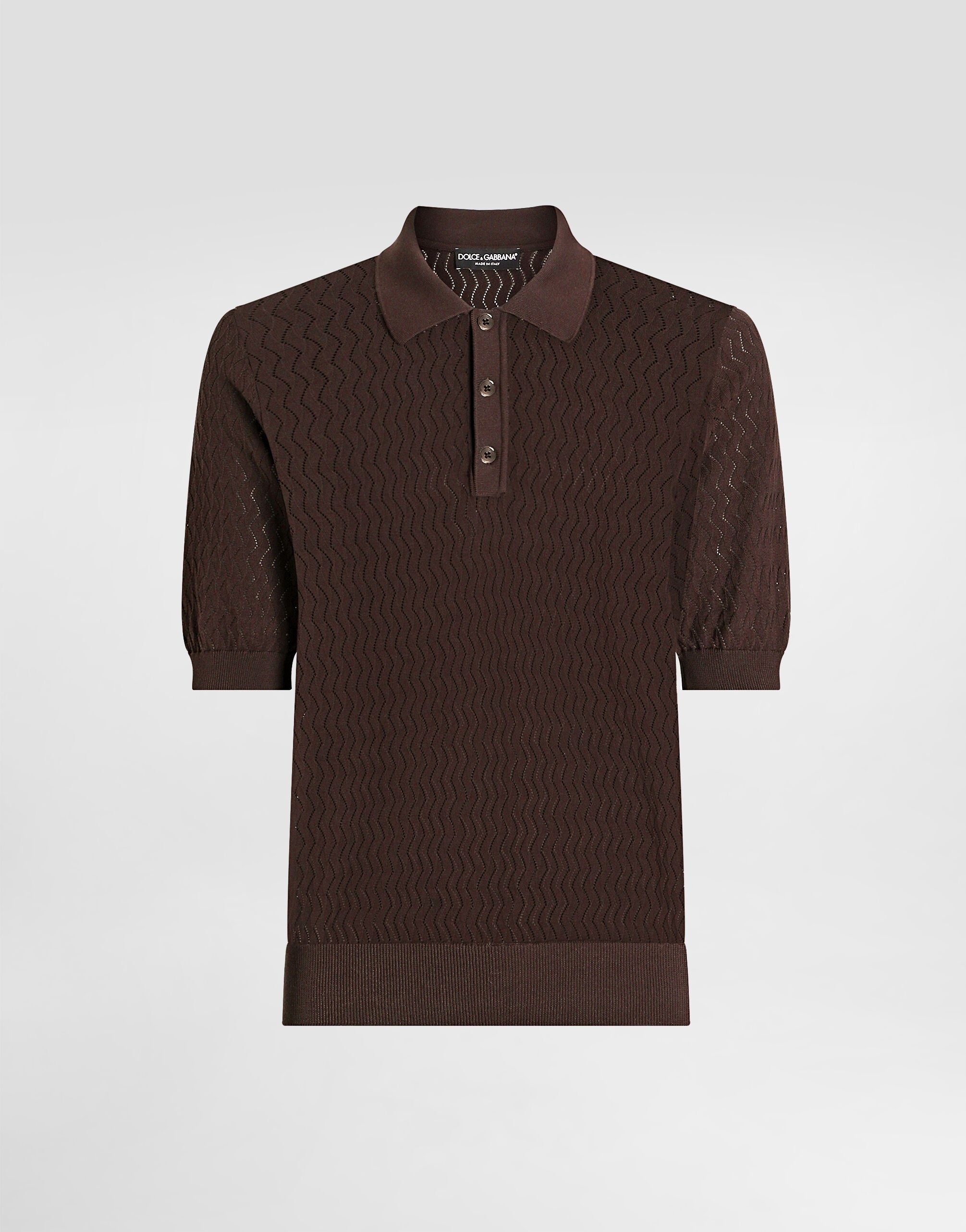 This short-sleeved polo pullover is an essential garment for the modern man, perfect for a casual and refined look thanks to its microdot cotton workmanship. Micro-pattern cotton polo shirt: • Brown • Polo-shirt collar • Short sleeves • The model is 185 cm tall and wears a size 48 IT • Made in Italy External Composition: 100% Cotton