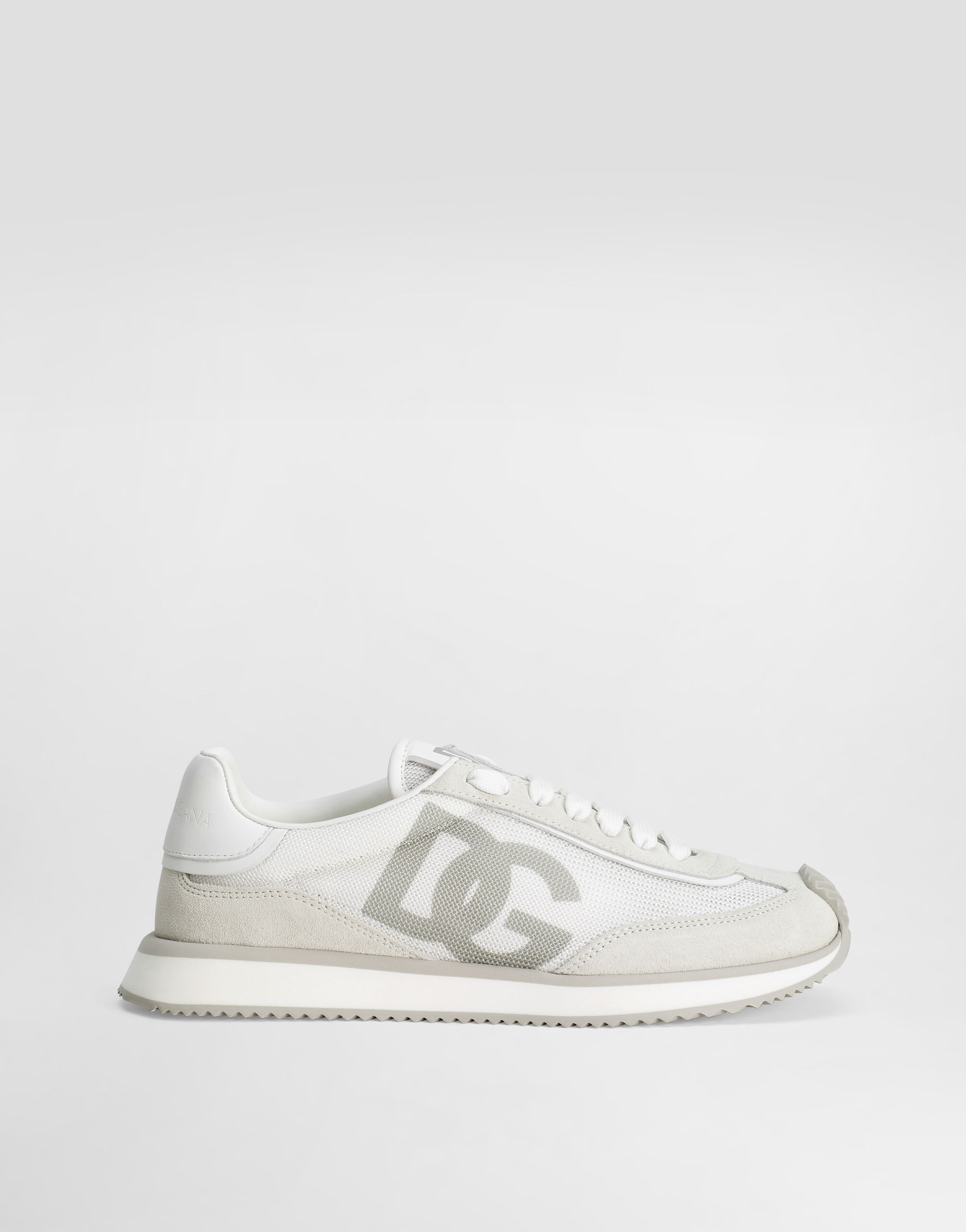 Future-orientated lightness. The new DG CUSHION sneakers feature a soft two-tone suede upper that enhances the crossover DG logo and contrasting print on the mesh side. The light and fitted rubber sole ensures constant comfort, without forgetting about style. The jacquard label finishes off the look, adding a touch of unmistakable elegance. DG CUSHION sneakers: • White • Flat laces • Branded tongue • Calfskin footbed with branded label • Rubber bottom assembly and branded sole • Item comes with a branded dust bag • Made in Italy External composition: 70% Calfskin 30% Polyester Internal composition: 79% Lambskin 21% Goatskin