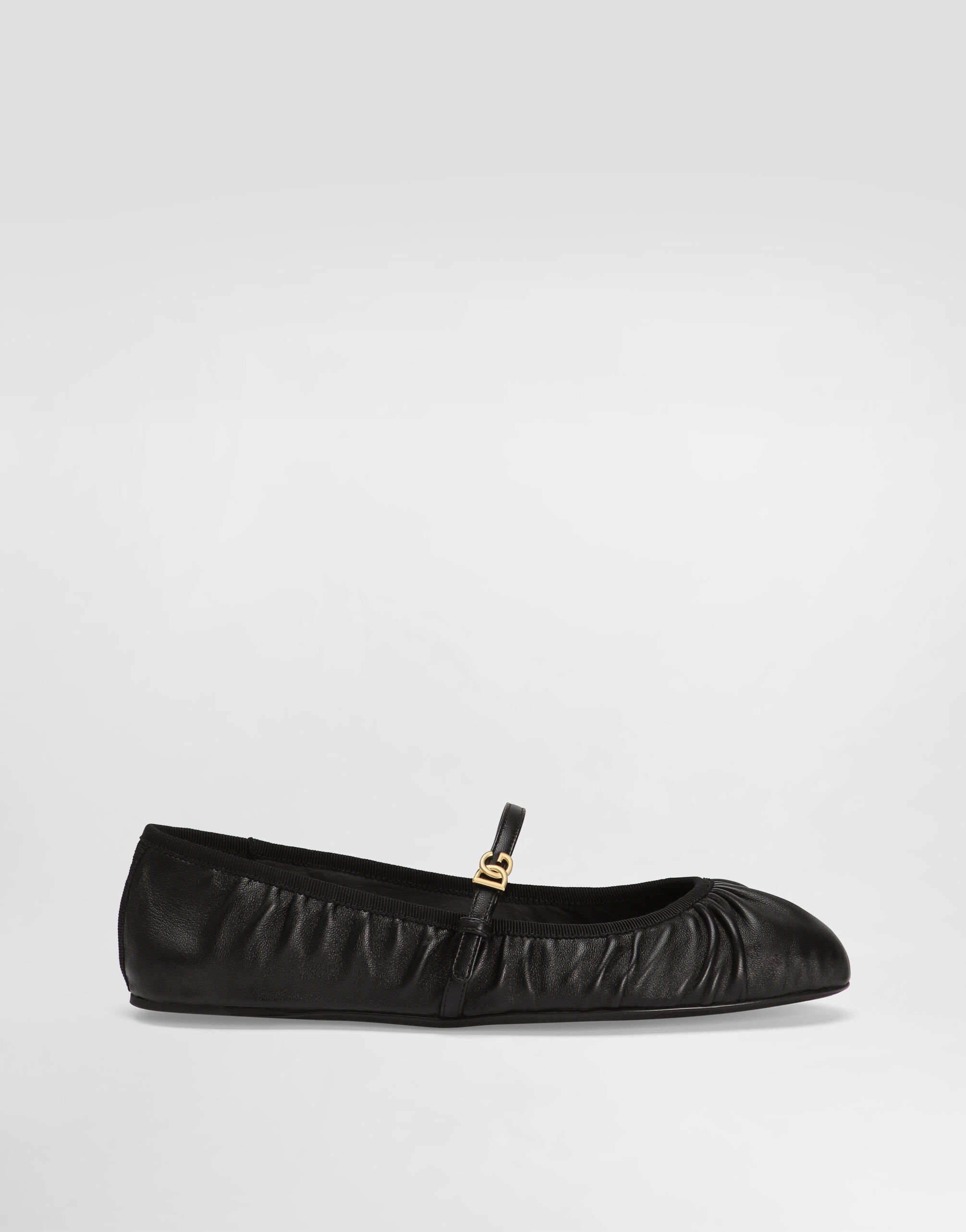 Feminine and versatile, these Vally ballet flats in soft nappa leather feature the DG logo on the strap. Nappa leather Vally ballet flats with gros-grain piping and DG logo: • Black • Detachable nappa leather strap with logo buckle • Quilted kidskin insole with branded label • Branded leather sole • Item comes with a branded dust bag • Made in Italy External composition: 90% Lambskin 5% Cotton 5% Viscose Internal composition: 69% Lambskin 31% Goatskin