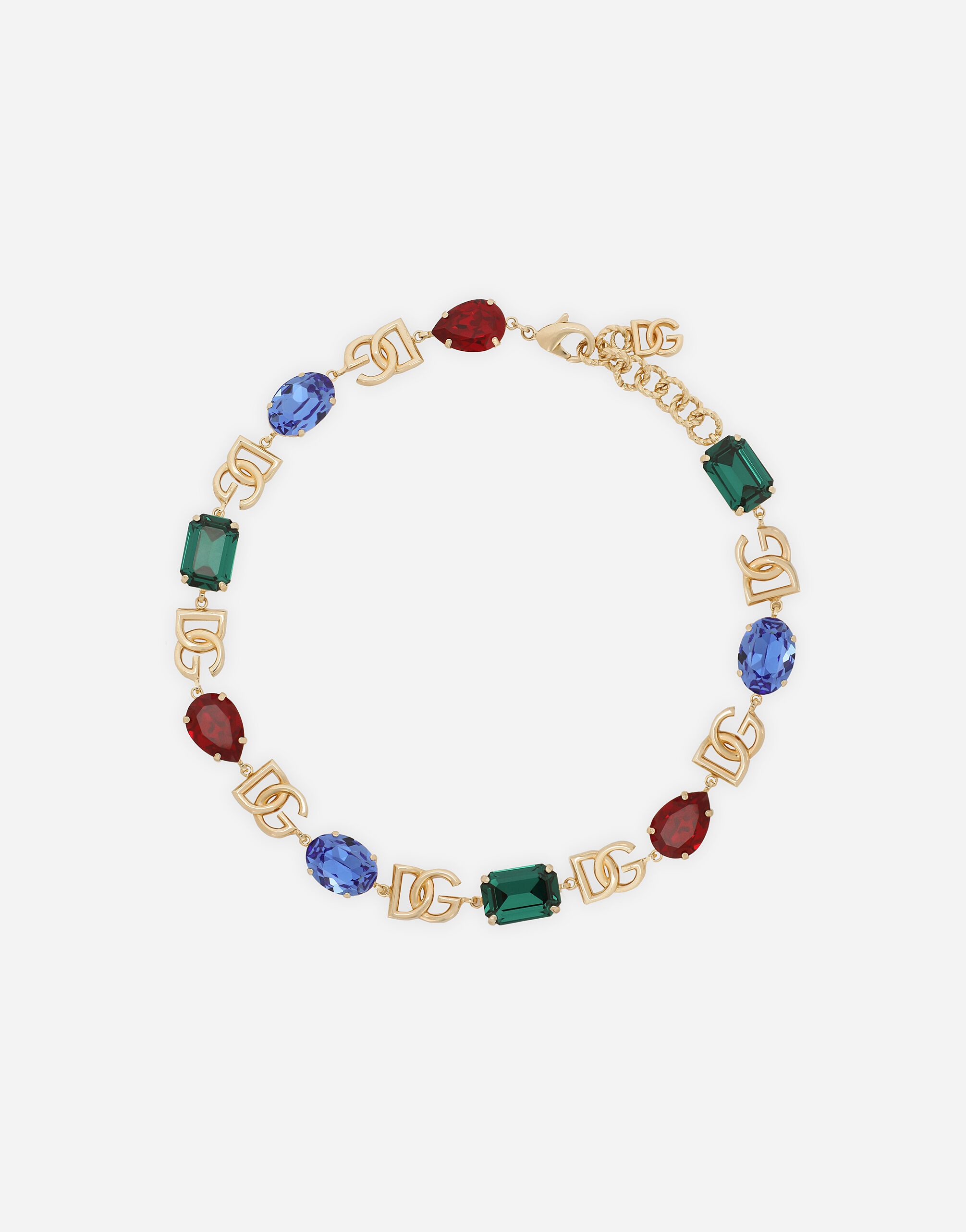 Since the very beginning, the style of the Sicilian Carretto carts has been an indelible part of Dolce&Gabbana. The amazement that these marvelous, beautiful works of art inspire when you first see them led our designers to put a fresh spin on the vision behind them. The colors are reworked through the eyes of the provocative and experimental artwork of the ‘60s, resulting in a psychedelic take on the classic Carretto style. Youthful and sophisticated, the resulting mix is breathtaking in its colors. Link necklace with DG logo and rhinestones: • Multi-colored • Clasp fastening • Nickel-free and hypoallergenic materials • Engraved logo • Made in Italy Composition: 70% Brass 30% Glass