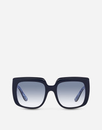 The evolution of the iconic Print Family:the distinctive brand pattern now plays with different colours for a unique look. • Blue on Blue Maiolica frame • Blue on Blue Maiolica acetate temples • Light blue lenses • 100% UV protection • Size lens - bridge - temple: 54- 17 - 145 mm • Fitting: Standard • Packaging: Istitutional • Made in Italy undefined