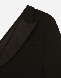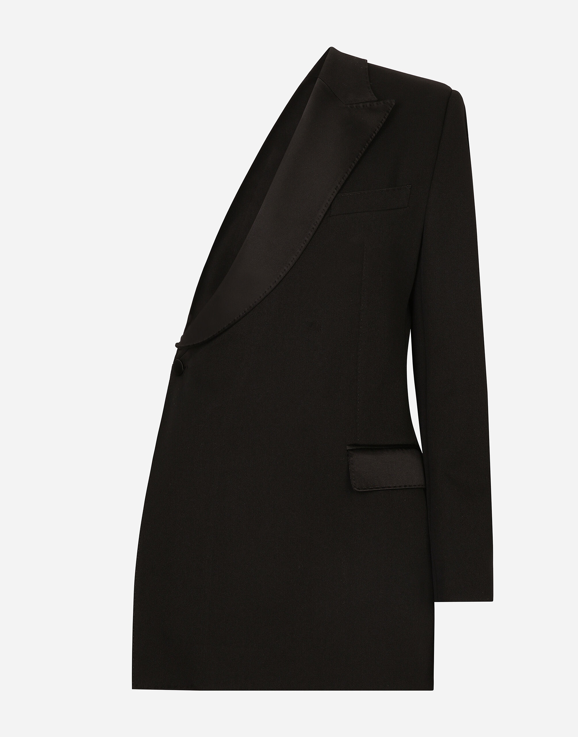 In the “WOMAN SS 24” Collection, the imagery of old Sicily interacts with the masculine, with sensual shapes, lace, nude tones and delicate overlays, to create pieces that move amid clean silhouettes, the elegance of the 1960s, the contrasts of black and white and luxurious textures. The designers are reworking their signature style and their iconic Sicilia black color to convey an aware, seductive and confident Sicilian WOMAN who is imbued with sensuality. One-shoulder wool gabardine jacket: • Black • Duchesse peak lapels • Long sleeves • Faux flap pocket • Side slits • Silk satin lining • Side button fastening • The piece measures 75 cm from the center back on a size IT 40 • The model is 175 cm tall and wears a size IT 40 • Made in Italy External composition: 80% Virgin Wool 16% Silk 04% Polyester Internal composition: 100% Silk
