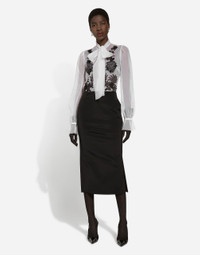 Organza pussy-bow shirt with lace appliqués