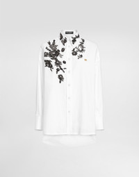 The Women’s DNA Collection is introducing a new side to femininity, which comes in shades of rose quartz, poised between sheerness and opacity, lightness and structure, formality and sensuality. Geometric Dolce Jackets, jacquard pajamas and floral brocade dresses intertwine with ultra-romantic designs. The DG print becomes an iconic statement, while Cordonetto lace and hints of Sicily Black embody the essence of a determined yet romantic femininity. Oversize cotton poplin shirt with lace appliques: • White • Shirt collar • Long sleeves • Oversize fit • Button fastenings with branded bottom edge • The piece measures 85 cm from the center back on a size IT 40 • The model is 175 cm tall and wears a size IT 40 • Made in Italy External composition: 100% Cotton