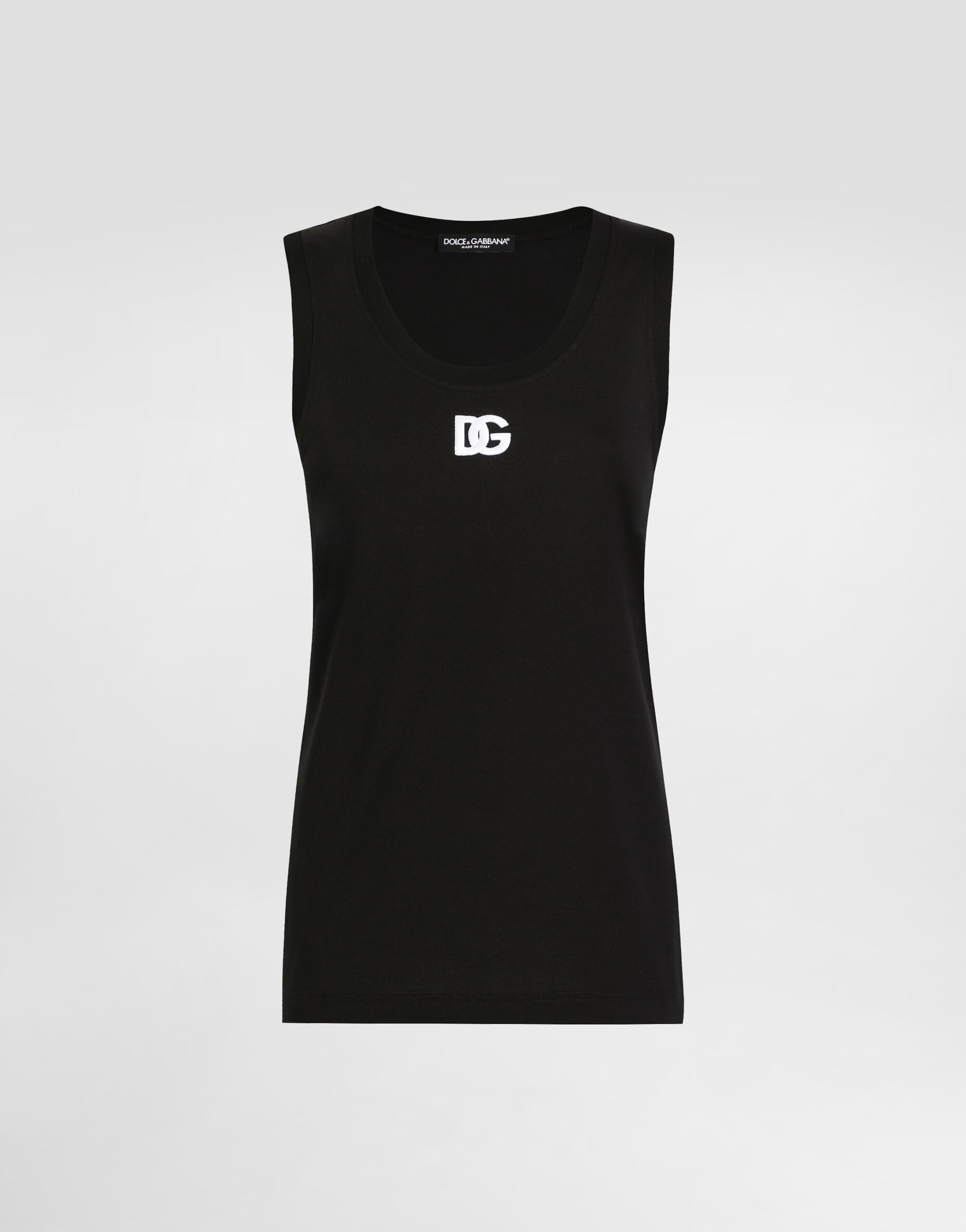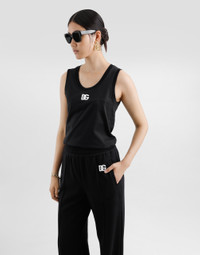 Dolce&Gabbana is creating a new DNA collection, using its style with a new concept of everyday elegance and apparel. Timeless, contemporary and traditional style, where sweatshirts, pants, T-shirts and sweaters are embellished by the DG logo, adding a touch of character to your outfits. Oversize cotton jersey tank top with DG logo embroidery: • Black • Round neckline • Sleeveless • Folded ribbed neck and armhole trims • Oversize fit • The piece measures 65.50 cm from the back of the neck on a size IT 40 • The model is 175 cm tall and wears a size IT 40 • Made in Italy External composition: 100% Cotton